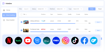 VideOne Video Downloader is an all-in-one solution that lets you download videos from OTT platforms and popular video sites, such as Netflix, Amazon Prime Video, YouTube, TikTok, Facebook, and Instagram. It saves videos in MP4, MKV, or MOV in high quality for flexible playback across different devices.